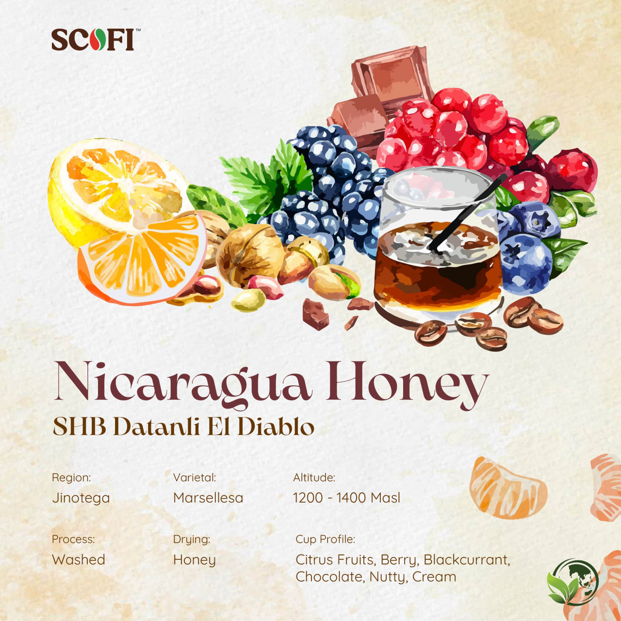 Winey, tropical fruits, citrus, floral, berries, intense sweet